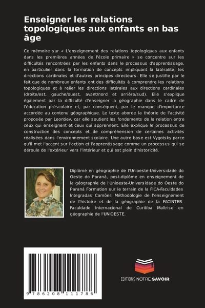 Ce mémoire sur « L'enseignement des relations topologiques aux enfants dans les premières années de l'école primaire » se concentre sur les difficultés rencontrées par les enfants dans le processus d'apprentissage, en particulier dans la formation de concepts impliquant la latéralité, les directions cardinales et d'autres principes directeurs. Elle se justifie par le fait que de nombreux enfants ont des difficultés à comprendre les relations topologiques et à relier les directions latérales aux directions cardinales (droite/est, gauche/ouest, avant/nord et arrière/sud). Elle s'explique également par la difficulté d'enseigner la géographie dans le cadre de l'éducation préscolaire et, par conséquent, par le manque d'importance accordée au contenu géographique. Le texte aborde la théorie de l'activité proposée par Leontiev, car elle soutient les fondements de la relation entre ceux qui enseignent et ceux qui apprennent. Elle explique le processus de construction des concepts et de compréhension de certaines activités réalisées dans l'environnement scolaire. Une autre base est Vygotsky parce qu'il met l'accent sur l'action et l'apprentissage comme un processus qui se déroule de l'extérieur vers l'intérieur et qui est plein d'historicité.