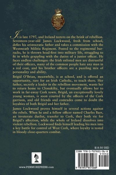 It is late 1797, and Ireland teeters on the brink of rebellion. Seventeen-year-old James Lockwood, fresh from school, defies his aristocratic father and takes a commission with the Westmeath Militia Regiment. Posted to the regimental barracks, he is thrown head-first into military life, struggling to fit in while grappling with the duties of a junior officer. He faces numerous challenges: the Irish enlisted men are distrustful of their officers, many of the common people hate any man in a red coat, and his brother officers are a puzzling mix of personality and ability. Brigid O'Brian, meanwhile, is at school, and is offered an opportunity, rare for an Irish Catholic, to teach there. Her father wants her to return home to Clonakilty, but eventually allows her to work in far-away Cork town. Brigid, an exceptionally lovely young woman, is soon courted by the officers of the Cork garrison. As a result old friends and comrades begin to doubt the loyalties of both Brigid and her father who appears to have a darker life that could be related to the rebellion. James Lockwood proves himself in several actions against the rebels. When he and a fellow officer named Charles Barr, an inveterate duelist, transfer to Cork, they both vie for Brigid's affection, while the whole of Ireland dissolves into violent rebellion. Lockwood finds himself leading his men into a key battle for control of West Cork, where loyalty is tested in bloody close-quarters combat.