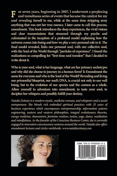 For seven years, beginning in 2007, I underwent a perplexing and tumultuous series of events that became the catalyst for my soul revealing herself to me, while at the same time stripping away anything that was not her true essence. I later came to call this process, ensoulment. This book introduces the deep experiences, the vivid visions and clear transmissions that streamed through my psyche and culminated in the inception of a profound model explaining how the universe comes into being and how we play a very personal role in it. The final model revealed, links our personal soul, with our collective soul, with the Soul of the World through "particles of experience". I found the realizations so compelling for "first time soul travelers" that I decided to write about it. Who is your soul, what is her language, what are her primary archetypes and why did she choose to journey in a human form? Is Ensoulment the same for everyone and who is the Soul of the World? Revealing and living our primordial blueprint, our Soul's DNA, is crucial not only to our well being, but to the evolution of our species and the cosmos as a whole. Allow yourself to adventure into ensoulment, to taste your soul, to decipher her whispers and possibly fulfill your destiny.
