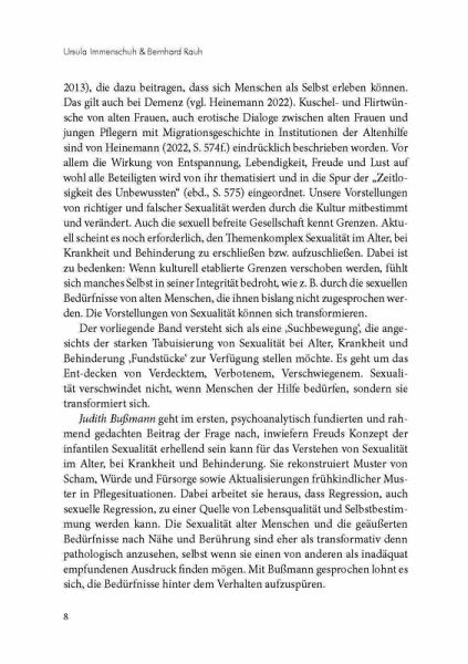 Sexualität und erotische Anziehung sind bei alten, kranken und Menschen mit Behinderung oft tabuisiert. Dabei ist das Erleben von Begehren und Begehrt-Werden für unser Wohlbefinden zentral, auch oder vielleicht gerade dann, wenn wir uns durch Alter, Erkrankung oder Behinderung eingeschränkt fühlen.Die Beiträge dieses Buches widmen sich dem Abgelehnten und Unsichtbargemachten: der Lust am Pflegen, am Berühren, am (Ver-)Sorgen genauso wie am Gepflegt-, Berührt- und Versorgt-Werden. Denn all das zu ent-decken, ist die Voraussetzung dafür, Sexualität in der Arbeit mit Menschen - sei es im Gesundheitswesen, der Altenhilfe, im therapeutischen oder pädagogischen Bereich - zu berücksichtigen und dieser Lebenskraft und Lebenslust zur Anerkennung zu verhelfen.