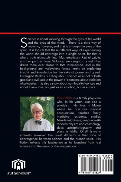 Science is about knowing through the eyes of the world and the eyes of the mind. There is a third way of knowing, however, and that is through the eyes of the spirit. It is logical that these different ways of experiencing the world should converge into a single point, for that is where truth ultimately lies. Mathematician, Rachel Lajoie, and her partner, Terry McGuire, are caught in a web that draws them ever closer to that intersection, and in the background are malevolent forces intent on exploiting insight and knowledge for the sake of power and greed. Entangled Realms is a story about science as a tool of both good and evil; about the power of coercion; about violation of principles. It is also a story about non-local influences and about love - love, not just as an emotion, but as a force.