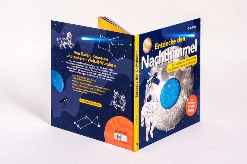 Der Nachthimmel ist faszinierend und eine Entdeckungsreise wert. Mond, Sterne, Milchstraße, Planeten und ferne Galaxien sind die großen Wunder der Natur, die Kindern ab 8 Jahren in diesem reich bebilderten Buch nahegebracht werden. Sie erfahren, wie man Sterne und Sternbilder erkennt, welche Hilfsmittel man dazu nutzen kann und was es alles Wissenswerte vom Großen Bären bis hin zur Andromedagalaxie gibt. Als Besonderheit enthält das Buch eine drehbare Sternkarte, mit deren Hilfe die jungen Forscher Sterne und Konstellationen am Nachthimmel bestimmen können.