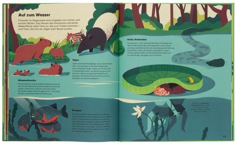 Wusstet ihr, dass nur etwa 4% der Landfläche der Erde tropischer Regenwald ist? Und das dort mehr 50% der erforschten Pflanzen- und Tierarten leben? Diese und weitere spannende Fakten zu den Regenwäldern der Erde und ihrer Bewohner finden sich in dem knapp 60 Seiten umfassenden Buch. Emma und Louis