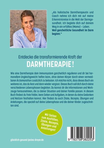 Entdecke die Kraft des Darmes: Dein Weg zu ganzheitlicher Gesundheit und Erfüllung!Lasse dich von den Informationen und Werkzeugen in diesem Buch unterstützen. "Entdecke die transformierende Kraft der Darmtherapie" bietet einen ganzheitlichen Ansatz, um dein Immunsystem zu regulieren und hormonelle Ungleichgewichte zu behandeln, ohne dich durch einen unnötigen Ärztemarathon zu belasten. Die Autorin, Janina Dreyer, begleitet dich auf dem Weg zu einem erfüllten (Mama)-Leben und betont die Bedeutung ganzheitlicher Gesundheit, die im Darm beginnt. Das Buch bietet eine Vielzahl von Werkzeugen, Informationen und Übungen, die speziell auf verschiedene Lebensphasen zugeschnitten sind. Von der Schwangerschaft über die Geburt bis hin zum Familienleben erfährst du, wie der Darm deine Gesundheit beeinflusst und wie du durch Achtsamkeit, den Säure-Basen-Haushalt und andere Methoden deine Darmgesundheit verbessern kannst. Neben praktischen Tipps enthält das Buch auch persönliche Erfahrungen der Autorin sowie Anleitungen zur inneren Reinigung, zum Umgang mit ätherischen Ölen und zur Integration von Zeit für dich selbst in den Alltag. Es ist mehr als nur ein Ratgeber; es ist ein Begleiter durch verschiedene Lebensphasen, der dir hilft, das Beste für dich und deine Familie auszuwählen.