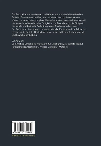 Das Buch leitet an zum Lernen und Lehren mit und durch Neue Medien. Es liefert Erkenntnisse darüber, wie Lernsituationen optimiert werden können, in denen eine komplexe Medienkompetenz vermittelt werden soll, die sowohl medientechnische Fertigkeiten umfasst als auch die Fähigkeit, die soziale und kulturelle Bedeutung Neuer Medien zu reflektieren. Das Buch bietet Anregungen, Impulse, Modelle für verschiedene Felder des Lernens in der Schule, Hochschule sowie in der außerschulischen Jugend- und Erwachsenenbildung.