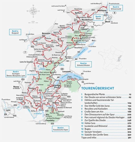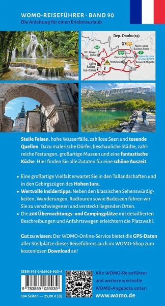 Steile Felsen, hohe Wasserfälle, zahllose Seen und tosende Quellen. Dazu malerische Dörfer, beschauliche Städte, zahlreiche Festungen, großartige Museen und eine fantastische Küche. Hier finden Sie alle Zutaten für eine schöne Auszeit. ¿ Eine großartige Vielfalt erwartet Sie in den Tallandschaften und in den Gebirgszügen des Hohen Jura. ¿ Wertvolle Insidertipps: Neben den klassischen Sehenswürdigkeiten, Wanderungen, Radtouren sowie Badeseen führen wir Sie zu verschwiegenen und versteckt liegenden Orten. ¿ Die 206 Übernachtungs- und Campingplätze mit detaillierten Beschreibungen und Anfahrtswegen erleichtern die Platzwahl.