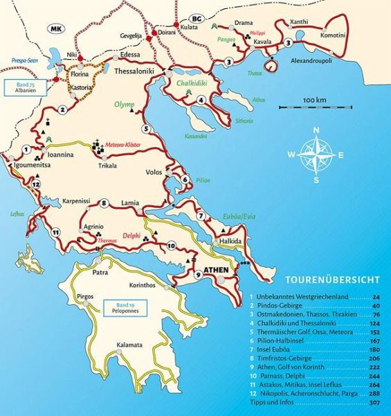 Auf über 5000 Kilometern und 12 Wohnmobiltouren entdecken Sie Griechenland (ohne Peloponnes). Bestaunen Sie die Wiege unserer Kultur: antike Amphitheater und Tempel, Klöster und frühchristliche Kirchen. Entspannen Sie am Meer, durchwandern Sie die tiefste Schlucht Europas oder baden Sie in berühmten Thermalquellen. Tipps und Hinweise zu kleinen Sandbadebuchten und traumhaften Stränden an der über 4000 Kilometer langen Küstenlinie Zahlreiche Hintergrund-Informationen über Land, Leute und Traditionen Über 250 Bade- und Übernachtungsplätze mit Beschreibungen und AnfahrtswegenGut zu wissen: Der WOMO-Online-Service bietet die GPS-Daten aller Stellplätze dieses Reiseführers auch im WOMO-Shop zum kostenlosen Download an!