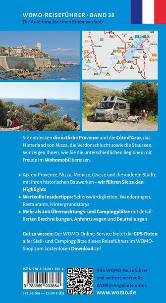 Sie entdecken die östliche Provence und die Côte d'Azur, das Hinterland von Nizza, die Verdonschlucht sowie die Stauseen. Wir zeigen Ihnen, wie Sie die unterschiedlichen Regionen mit Freude im Wohnmobil bereisen. ¿ Aix-en-Provence, Nizza, Monaco, Grasse und die anderen Städte mit ihren historischen Bauwerken - wir führen Sie zu den Highlights ¿ Wertvolle Insidertipps: Sehenswürdigkeiten, Wanderungen, Restaurants, Hintergrundstorys ¿ Mehr als 200 Übernachtungs- und Campingplätze mit detaillierten Beschreibungen, Anfahrtswegen und Beurteilungen