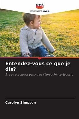 Entendez-vous ce que je dis? Écouter les voix de l'Île-du-Prince-Édouard Les parents ont saisi les opinions et les points de vue des parents d'enfants d'âge préscolaire de partout dans la province de l'Île-du-Prince-Édouard concernant leur point de vue sur la petite enfance et la parentalité. Les parents ont indiqué qu'ils voulaient des services de garde d'enfants accessibles et abordables de haute qualité, une communication efficace avec les concepteurs de programmes et les décideurs, des possibilités continues de contribuer aux décisions qui les concernent en tant que parents ou leurs enfants, des programmes et des services qui reflètent la recherche actuelle et les meilleures pratiques, sur le développement de l'enfant et les techniques parentales. En général, les parents de l'Île-du-Prince-Édouard veulent être compris et voir leurs besoins satisfaits de manière significative.