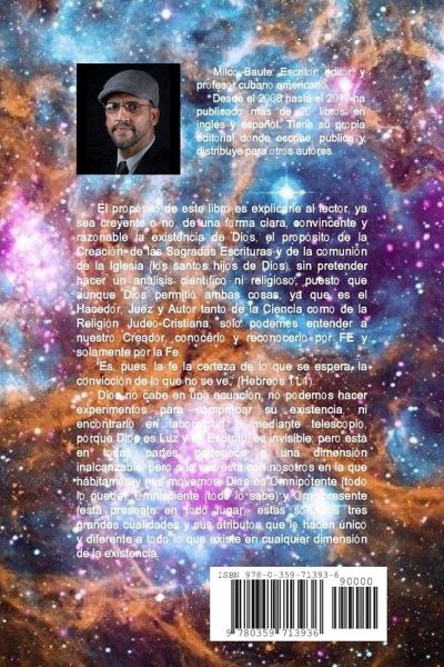 El prop?sito de este libro es explicarle al lector de una forma clara, convincente y razonable la existencia de Dios, el prop?sito de la Creaci?n, de las Sagradas Escrituras y de la comuni?n de la Iglesia, sin pretender hacer un an?lisis cient?fico ni religioso, puesto que aunque Dios permiti? ambas cosas, solo podemos entender a nuestro Creador, conocerlo y reconocerlo por FE y solamente por la Fe.(Hebreos 11:1). Dios no cabe en una ecuaci?n, no podemos hacer experimentos para comprobar su existencia, ni encontrarlo en laboratorio o mediante telescopio, porque Dios es Luz y es Esp?ritu, es invisible, pero est? en todas partes, pertenece a una dimensi?n inalcanzable, pero a la vez est? con nosotros en la que habitamos y nos movemos. Dios es Omnipotente (todo lo puede), Omnisciente (todo lo sabe) y Omnipresente (est? presente en todo lugar), estas son sus tres grandes cualidades y sus atributos que lo hacen ?nico y diferente a todo lo que existe en cualquier dimensi?n de la existencia.