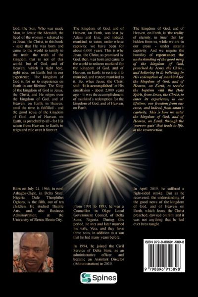 God, the Son, Who was made Man, in Jesus, the Messiah, the Seed of the woman - referred to as Jesus, the Christ, in this book - said that He was born and came to the world to testify to the truth: the truth of the kingdom that is not of this world, but the kingdom of God, and of Heaven, which is right here, right now, on Earth, but in our experience. The kingdom of God is for us to experience on Earth in our lifetime, which is how we enter it at the resurrection. The King of the kingdom of God is Jesus, the Christ, and He reigns over the kingdom of God, and of Heaven, on Earth, in Heaven, until the time is fulfilled - and the good news of the kingdom of God, and of Heaven, on Earth, is preached to all - for His return from Heaven, to Earth, to reign and rule over it forever. The kingdom of God, and of Heaven, on Earth, was lost by Adam and Eve, our first parents, and indeed, mankind, to Satan, under whose captivity, we have been for about 6,000 years. This is why Jesus, the Christ, as promised by God, then, was born and came to the world to redeem mankind for the kingdom of God, and of Heaven, on Earth, restore it to mankind, and restore mankind to it. So, when Jesus, the Christ said: 'It is accomplished' at His crucifixion - about 2,000 years ago - it was the accomplishment of mankind's redemption for the kingdom of God. The kingdom of God, and of Heaven, on Earth, is 'the reality of eternity, in time' that lay hidden from us, while we are in our cross - under satan's captivity. And we require repentance, the understanding of the good news of the kingdom of God, preached by Jesus, the Christ, having faith or believing in His redemption of mankind for the kingdom of God, and of Heaven, on Earth, to receive the baptism with the Holy Spirit, from Jesus, the Christ, to enter the experience of the kingdom of God, and of Heaven, on Earth, in our lifetime - our freedom from our cross, and indeed, Satan's captivity - and at the resurrection through the 'narrow gate' that leads to life: to eternal life.