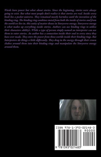 Words have power but what about stories. Since the beginning, stories were always going to exist. But what most people don't realize is that stories are real. Inside every book lies a pocket universe. They remained mostly harmless until the invention of the binding ring. The binding ring combines metal from both the inside of stories and from the world we live in. this unity of matter draws in Storyverse energy. Storyverse energy is what makes up everything inside stories. Authors can use binding rings to utilize their characters ability's. While a type of person simply named an interpreter can use them to enter stories. An author has a connection inside their soul to every story they have ever made. They store the power from those worlds inside their binding rings. But Interpreters do things a little differently. They drag in the energy through their crown chakra around them into their binding rings and manipulate the Storyverse energy around them.