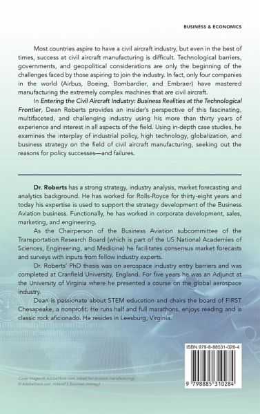Most countries aspire to have a civil aircraft industry, but even in the best of times, success at civil aircraft manufacturing is difficult. Technological barriers, governments, and geopolitical considerations are only the beginning of the challenges faced by those aspiring to join the industry. In fact, only four companies in the world (Airbus, Boeing, Bombardier, and Embraer) have mastered manufacturing the extremely complex machines that are civil aircraft. In Entering the Civil Aircraft Industry: Business Realities at the Technological Frontier, Dr. Dean Roberts provides an insider's perspective of this fascinating, multifaceted, and challenging industry using his more than thirty years of experience and interest in all aspects of the field. Using in-depth case studies, he examines the interplay of industrial policy, high technology, globalization, and business strategy on the field of civil jet aircraft manufacturing, seeking out the reasons for policy successes-and failures.