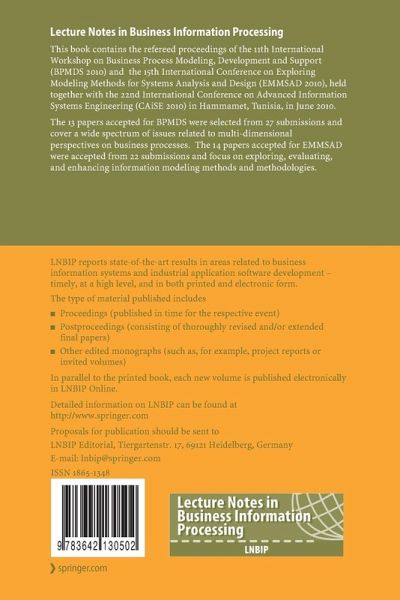 11th International Workshop, BPMDS 2010, and 15th International Conference, EMMSAD 2010, held at CAiSE 2010, Hammamet, Tunisia, June 7-8, 2010, Proceedings Herausgegeben:Bider, Ilia; Halpin, Terry; Krogstie, John; Nurcan, Selmin; Proper, Erik; Schmidt, Rainer; Ukor, Roland