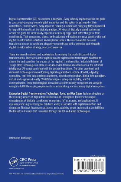 Enterprise Digital Transformation: Technology, Tools, and Use Cases features chapters on the evolving aspects of digital transformation and intelligence. It covers the unique competencies of digitally transformed enterprises, IIoT use cases, and applications. It explains promising technological solutions widely associated with digital innovation and disruption. The book focuses on setting up and sustaining smart factories that are fulfilling the Industry 4.0 vision that is realized through the IIoT and allied technologies.