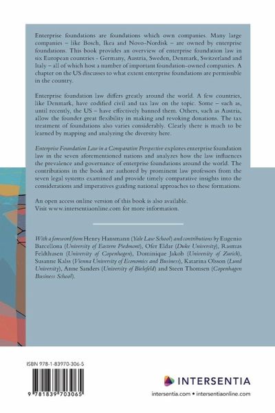 Many large companies - like Bosch, Ikea and Novo-Nordisk - are owned by enterprise foundations. This book provides an overview of enterprise foundation law in six European countries and the US. The book explores enterprise foundation law in the seven aforementioned nations and analyzes how the law influences the prevalence and governance of enterprise foundations around the world.