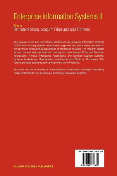 This book comprises the refereed papers together with the invited keynote papers, presented at the Second International Conference on Enterprise Information Systems. The conference was organised by the School of Computing at Staffordshire University, UK, and the Escola Superior de Tecnologia of Setubal, Portugal, in cooperation with the British Computer Society and the International Federation for Information Processing, Working Group 8.1. The purpose of this 2nd International Conference was to bring together researchers, engineers and practitioners interested in the advances in and business applications of information systems. The papers demonstrate the vitality and vibrancy of the field of Enterprise Information Systems. The research papers included here were selected from among 143 submissions from 32 countries in the following four areas: Enterprise Database Applications, Artificial Intelligence Applications and Decision Support Systems, Systems Analysis and Specification, and Internet and Electronic Commerce. Every paper had at least two reVIewers drawn from 10 countries. The papers included in this book were recommended by the reviewers. On behalf of the conference organising committee we would like to thank all the members of the Programme Committee for their work in reviewing and selecting the papers that appear in this volume. We would also like to thank all the authors who have submitted their papers to this conference, and would like to apologise to the authors that we were unable to include and wish them success next year.
