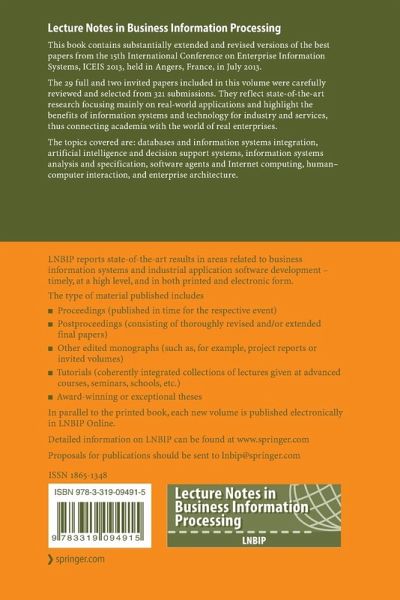This book contains substantially extended and revised versions of the best papers from the 15th International Conference on Enterprise Information Systems, ICEIS 2013, held in Angers, France, in July 2013.