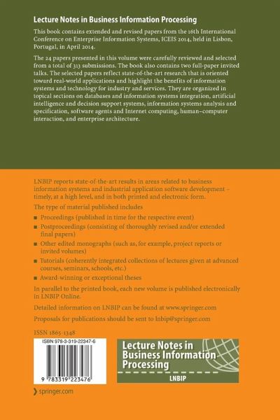 This book contains extended and revised papers from the 16th International Conference on Enterprise Information Systems, ICEIS 2014, held in Lisbon, Portugal, in April 2014.