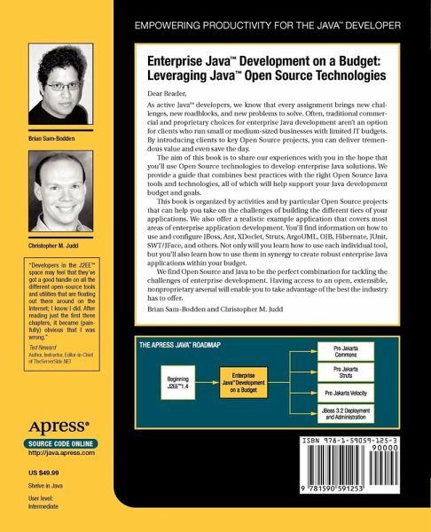 Open source has had a profound effect on the Java community. Many Java open source projects have even become de-facto standards. The principal purpose of Enterprise Java Development on a Budget is to guide you through the development of a real enterprise Java application using nothing but open source Java tools, projects, and frameworks.