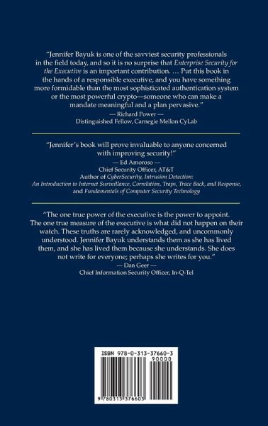 A guide to security written for business executives to help them better lead security efforts. Enterprise Security for the Executive: Setting the Tone from the Top is designed to help business executives become familiar with security concepts and techniques to make sure they are able to manage and support the efforts of their security team. It is the first such work to define the leadership role for executives in any business's security apparatus. In Enterprise Security for the Executive, author Jennifer Bayuk, a highly regarded information security specialist and sought-after consultant and speaker, explains protocols and technologies at just the right level of depth for the busy executive-in their language, not the tech-speak of the security professional. Throughout, the book draws a number of fact-based scenarios to illustrate security management basics, including 30 security "horror stories," and other analogies and terminology not commonly shared outside of the security profession.