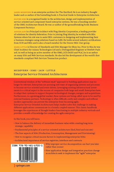 "McGovern, Sims, Jain, and Little have authored a comprehensive book on enterprise service-oriented architectures (SOAs). ... Those architects who plan to learn about the subject would do well to go through this book. ... It clearly outlines the purpose of the book and the ways of using it. ... The book has excellent content for a technologically oriented person to learn about SOA. ... This book is well worth having for a technologist." (Shantanu Bhattacharya, ACM Computing Reviews, Vol. 49 (4), April, 2008)