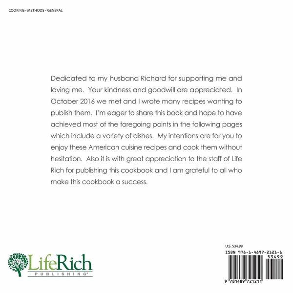 This book will help you learn how to cook. Learning how to cook is the way to save money. You don't save by buying hamburger helpers and prepared foods; you save by buying fresh foods in season or in large supply when they are fresh and usually best and by preparing them from scratch at home. Why pay for someone else's work when you know how to do it and can save money for yourself? Cooking well doesn't take a great deal of time, and when you cook, you'll be eating far better meals than you can by buying from a freezer or at a restaurant. I'm eager to share this book, and I hope to have achieved most of the foregoing points in the following pages, which include a variety of dishes. In this book, you'll enjoy delicious meals, and these recipes are typical of the American approach of taking ordinary, everyday ingredients and, with a little love and imagination, turning them into something appealing, even exciting, and certainly fun to make, as well as to serve and eat.