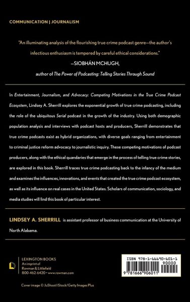 This book explores the exponential growth of true crime podcasting and its effects on the growth of criminal justice reform advocacy in the United States. Sherrill argues that true crime podcasts exist as hybrid organizations with multiple goals, including entertainment, criminal justice reform advocacy, and journalistic inquiry.