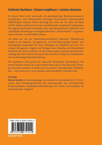Auf Basis der aus der Nachrichtenwerttheorie bekannten Nähefaktoren werden je ein englisch-, portugiesisch- und deutschsprachiges Länder- und Zeitungspaar ausgewählt: Für diese Zeitungen aus Südafrika und dem Vereinigten Königreich, Angola und Portugal sowie Namibia und Deutschland überprüft der Autor zunächst, ob das jeweils andere Land aus der Berichterstattung über den anderen Kontinent hervorsticht. Es folgt eine Detailanalyse der wechselseitigen Berichterstattung.