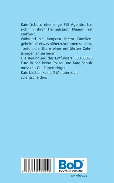 Kate Schulz, ehemalige FBI Agentin, hat sich in ihrer Heimatstadt Plauen fest etabliert. Während sie langsam ihrem Familiengeheimnis etwas näherzukommen scheint, treten die Eltern einer entführten Zehnjährigen an sie heran. Die Bedingung des Entführers: 500.000,00 Euro in bar, keine Polizei und Kate Schulz muss das Geld überbringen. Kate bleiben 2 Minuten sich zu entscheiden.