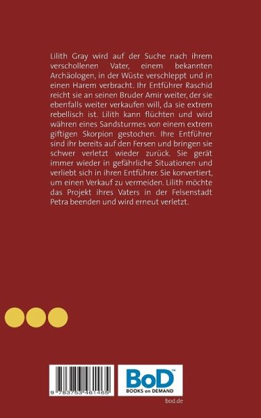 Lilith Gray wird auf der Suche nach ihrem verschollenen Vater, einem bekannten Archäologen, in der Wüste verschleppt und in einen Harem verbracht. Ihr Entführer Raschid reicht sie an seinen Bruder Amir weiter, der sie ebenfalls weiter verkaufen will, da sie extrem rebellisch ist. Lilith kann flüchten und wird währen eines Sandsturmes von einem extrem giftigen Skorpion gestochen. Ihre Entführer sind ihr bereits auf den Fersen und bringen sie schwer verletzt wieder zurück. Sie gerät immer wieder in gefährliche Situationen und verliebt sich in ihren Entführer. Sie konvertiert, um einen Verkauf zu vermeiden. Lilith möchte das Projekt ihres Vaters in der Felsenstadt Petra beenden und wird erneut verletzt.