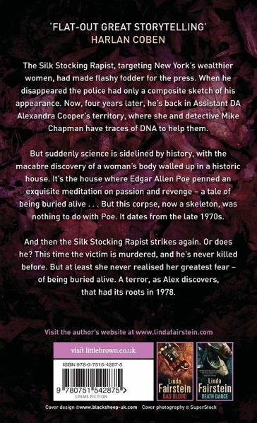 After a lull of four years, the 'silk stocking rapist' is back at work on the Upper East side, but this time Assistant DA Alexandra Cooper and Detective Mike Chapman have perfect DNA evidence to work with. They also have a much older case to work on - a skeleton has been found entombed in the wall of a house Edgar Allan Poe once lived in, but it turns out to be a relatively modern murder - from 1978. On the day the discovery of this body is leaked to the press, Alex gets a call that the silk stocking rapist has struck again, this time fatally. Or has he? The m.o. isn't precisely the same as the others, and it transpires that the victim worked in Poe's old house in 1978. Are the cases linked or is someone trying to silence possible witness to a thirty-five-year-old murder? With consummate skill, Linda Fairstein has created an outstanding crime novel, layered with the history of New York, the roller-coaster everyday life of a prosecutor and culminating with a surprising but satisfying denouement.