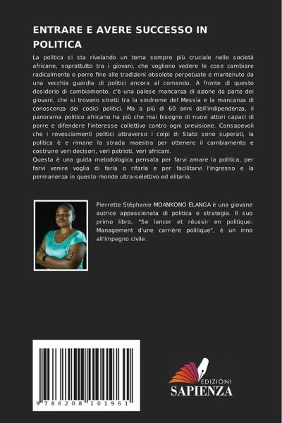 La politica si sta rivelando un tema sempre più cruciale nelle società africane, soprattutto tra i giovani, che vogliono vedere le cose cambiare radicalmente e porre fine alle tradizioni obsolete perpetuate e mantenute da una vecchia guardia di politici ancora al comando. A fronte di questo desiderio di cambiamento, c'è una palese mancanza di azione da parte dei giovani, che si trovano stretti tra la sindrome del Messia e la mancanza di conoscenza dei codici politici. Ma a più di 60 anni dall'indipendenza, il panorama politico africano ha più che mai bisogno di nuovi attori capaci di porre e difendere l'interesse collettivo contro ogni previsione. Consapevoli che i rovesciamenti politici attraverso i colpi di Stato sono superati, la politica è e rimane la strada maestra per ottenere il cambiamento e costruire veri decisori, veri patrioti, veri africani.Questa è una guida metodologica pensata per farvi amare la politica, per farvi venire voglia di farla o rifarla e per facilitarvi l'ingresso e la permanenza in questo mondo ultra-selettivo ed elitario.