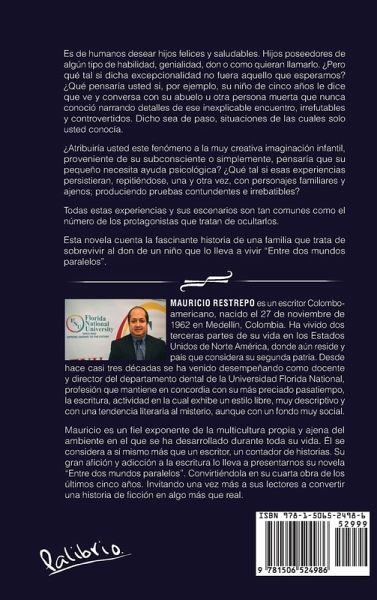 Es de humanos desear hijos felices y saludables. Hijos poseedores de algn tipo de habilidad, genialidad, don o como quieran llamarlo. Pero que tal si dicha excepcionalidad no fuera aquello que esperamos? Que pensara usted si, por ejemplo, su nio de cinco aos le dice que ve y conversa con su abuelo u otra persona muerta que nunca conoci narrando detalles de ese inexplicable encuentro, irrefutables y controvertidos. Dicho sea de paso, situaciones de las cuales solo usted conoca. Atribuira usted este fenmeno a la muy creativa imaginacin infantil, proveniente de su subconsciente o simplemente, pensara que su pequeo necesita ayuda psicolgica? Que tal si esas experiencias persistieran, repitindose, una y otra vez, con personajes familiares y ajenos; produciendo pruebas contundentes e irrebatibles? Todas estas experiencias y sus escenarios son tan comunes como el nmero de los protagonistas que tratan de ocultarlos. Esta novela cuenta la fascinante historia de una familia que trata de sobrevivir al don de un nio que lo lleva a vivir Entre dos mundos paralelos.