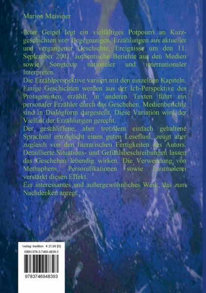 Es handelt sich um tunesische Begegnungen, eigene Erzählungen und Erlebnisse, Erzählungen aus der aktuellen Geschichte. Authentische Berichte aus den Medien, die sich auf die Ereignisse um den 11. September und die Folgen von 2001 beziehen. Brisante Hintergründe über die Zerstörung des World Trade Centers. In der Folge Interviews und Berichte über den Irakkrieg.Zypern, das geteilte Land. Eine zeitlose Reise zu außerirdischen kosmischen Wesen. Songtexte nationaler und internationaler Interpreten.