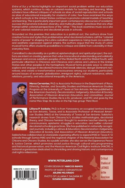 Entre el Sur y el Norte highlights an important social problem within our education systems, which continue to rely on colonial models for teaching and learning. While scholars have offered critiques of schools as sites of social reproduction and schools as sites of educational inequality for students of color, few have examined the ways in which schools in the United States continue to promote colonial models of teaching and learning. This is particularly important given contemporary discourses of academic success that promote inclusion, diversity, and multiculturalism-practices that are often framed within colonial perspectives of the "other." This book examines music as a site of anti-colonial resistance and decolonial praxis in schools.