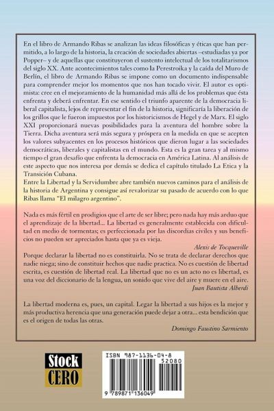 In this essay Dr. Ribas analizes the philosophy and ethics that begat throughout history the free societies -already studied by Popper-, as compared to those which backboned intelectually the the twentieth century totalitarisms. Facing the Perestroika and the fall of the Berlin wall, Armando Ribas' book becomes a major study document in order to obtain a clearer understanding of the times we live, as well as a sobering call to seriously evaluate the post-Castro Cuban transition alternatives in the actual Latin American context. The author stands optimistic: he believes in the improvement of mankind despite the troubles faced. Seen under this light the final triumph of free capitalistic democracy, far from showing the end of history, heralds the abandonement of the shackles imposed by the Hegel and Marx historicism. The twenty first century yields new possibilities to the adventure of man on Earth. Such adventure will stand safer and more prosperous as the fundamental values underlying in the historical processes that beget the free capitalistic democratic societies gain universal acceptance.