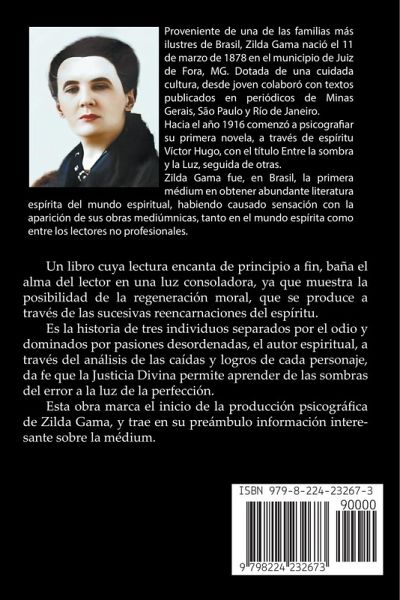 Un libro cuya lectura encanta de principio a fin, baña el alma del lector en una luz consoladora, ya que muestra la posibilidad de la regeneración moral, que se produce a través de las sucesivas reencarnaciones del espíritu. Es la historia de tres individuos separados por el odio y dominados por pasiones desordenadas, el autor espiritual, a través del análisis de las caídas y logros de cada personaje, da fe que la Justicia Divina permite aprender de las sombras del error a la luz de la perfección. Esta obra marca el inicio de la producción psicográfica de Zilda Gama, y trae en su preámbulo información interesante sobre la médium.