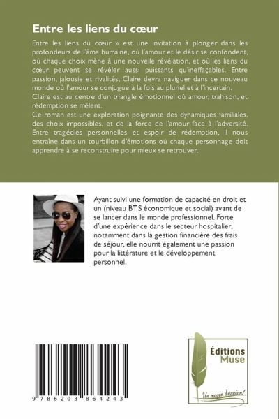 Entre les liens du coeur » est une invitation à plonger dans les profondeurs de l'âme humaine, où l'amour et le désir se confondent, où chaque choix mène à une nouvelle révélation, et où les liens du coeur peuvent se révéler aussi puissants qu'ineffaçables. Entre passion, jalousie et rivalités, Claire devra naviguer dans ce nouveau monde où l'amour se conjugue à la fois au pluriel et à l'incertain.Claire est au centre d'un triangle émotionnel où amour, trahison, et rédemption se mêlent.Ce roman est une exploration poignante des dynamiques familiales, des choix impossibles, et de la force de l'amour face à l'adversité. Entre tragédies personnelles et espoir de rédemption, il nous entraîne dans un tourbillon d'émotions où chaque personnage doit apprendre à se reconstruire pour mieux se retrouver.