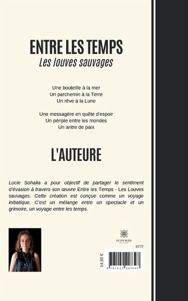 Lucie Sohalia a pour objectif de partager le sentiment d¿évasion à travers son ¿uvre Entre les Temps - Les Louves sauvages. Cette création est conçue comme un voyage initiatique. C¿est un mélange entre un spectacle et un grimoire, un voyage entre les temps.