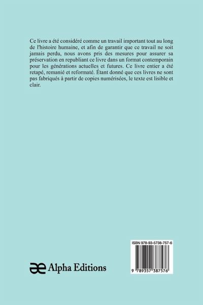 Entre Nous: Lectures françaises à l'usage des écoles primaires - I, a été considérée comme importante tout au long de l'histoire de l'humanité. Dans un effort pour s'assurer que ce travail ne soit jamais perdu, nous avons pris des mesures pour assurer sa préservation en republiant ce livre dans un format moderne pour les générations actuelles et futures. Ce livre complet a été retapé, remanié et reformaté. Comme ces livres ne sont pas des scans des publications originales des auteurs, le texte est lisible et clair.