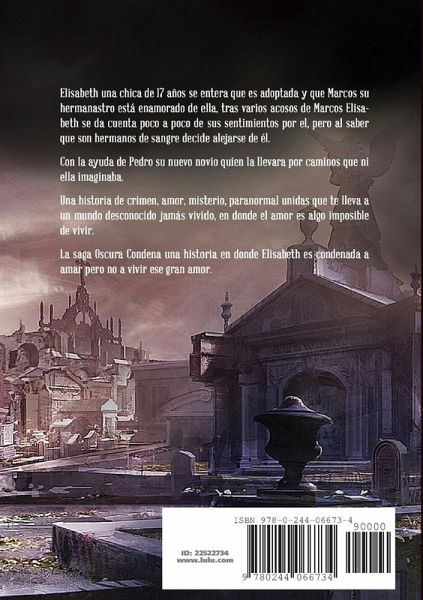 Elisabeth, una chica de diecisiete años, se entera de que es adoptada y de que Marcos, su hermanastro, está enamorado de ella... Elisabeth empieza a sentir algo por él, pero una inesperada verdad lo cambia todo y decide alejarse. Redescubre el amor de la mano de Pedro, su nuevo novio, que la llevará por caminos inimaginables. Una historia de crimen, pasión y misterio paranormal que te arrastrará a un mundo desconocido, en el que el amor es imposible. Saga Oscura Condena, ¿y si tu condena fuera amar sin lograr vivir ese gran amor?