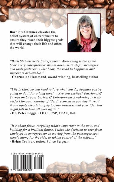 "Awakening is an opening up to an understanding that was once unknown. It really refers to change. Accepting the change from employee to business owner is your first step in an entrepreneurial awakening. As I became more awake, the rate of change in my understanding increased… On my journey from employee to entrepreneur and master business strategist I learned a few things about business and a lot about myself. So much so that I awakened to a new world of opportunities… I am now able to help more people, spend more time with my kids,… learn all the time, live my life in "growth mode," with passion, and love more intensely. Everything in my life has more colour and texture, more feeling and emotion." - Barb Stuhlemmer "Barb Stuhlemmer's Entrepreneurial Awakening is the guide book every entrepreneur should have. Barb states that being an entrepreneur is the brave choice, and with the steps, strategies and tools featured in this book, the road to happiness and success is achievable." - Charmaine Hammond - five-time bestselling author, speaker, Co-founder of Raise a Dream, President of Hammond International Inc. "It's about focus, targeting what's important in the now, and building for a brilliant future. I liken the decision to veer from employee to entrepreneur to moving from the passenger seat, simply along for the ride, to taking control of the wheel and making decisions on where you're going, and what you'll see. It's about chasing your passion instead of simply earning a pay cheque. You need to get this book." - Brian Trainor, retired Police Sgt, Cyberbully Prevention expert, Elder Fraud Prevention expert "Life is short so you need to love what you do… This 'Runway of Life' we're on has a beginning, a middle and an end - how we live it is totally up to us. Are you excited? Passionate? Turned on by your business? Entrepreneur Awakening is perfect for your runway of life. I recommend you read it and apply the philosophy to your business and life. You might fall in love all over again." - Dr. Peter Legge, O.B.C., CSP, CPAE, HoF Chairman/CEO/Publisher, Canada Wide Media