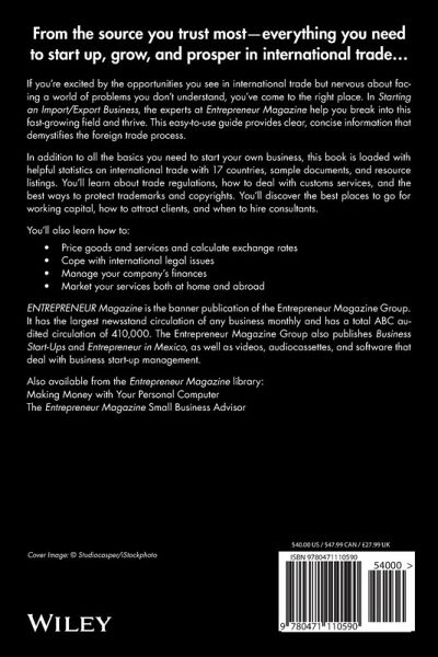 From the source you trust most--everything you need to start up, grow, and prosper in international trade . . . If you're excited by the opportunities you see in international trade but nervous about facing a world of problems you don't understand, you've come to the right place. In Starting an Import/Export Business, the experts at Entrepreneur Magazine help you break into this fast-growing field and thrive. This easy-to-use guide provides clear, concise information that demystifies the foreign trade process. In addition to all the basics you need to start your own business, this book is loaded with helpful statistics on international trade with 17 countries, sample documents, and resource listings. You'll learn about trade regulations, how to deal with customs services, and the best ways to protect trademarks and copyrights. You'll discover the best places to go for working capital, how to attract clients, and when to hire consultants. You'll also learn how to: * Price goods and services and calculate exchange rates * Cope with international legal issues * Manage your company's finances * Market your services both at home and abroad ENTREPRENEUR Magazine is the banner publication of the Entrepreneur Magazine Group. It has the largest newsstand circulation of any business monthly and has a total ABC audited circulation of 410,000. The Entrepreneur Magazine Group also publishes Business Start-Ups and Entrepreneur in Mexico, as well as videos, audiocassettes, and software that deal with business start-up management. Also available from the Entrepreneur Magazine library: * Making Money with Your Personal Computer * The Entrepreneur Magazine Small Business Advisor