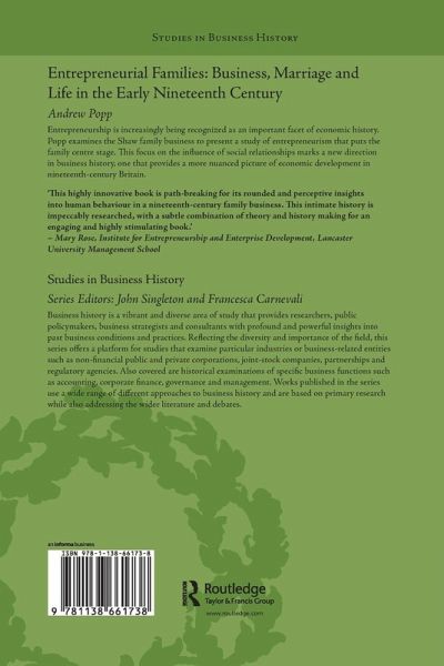 Entrepreneurship is increasingly being recognized as an important facet of economic history. Popp examines the Shaw family business to present a study of entrepreneurism that puts the family centre stage.