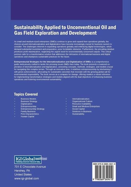 As small and medium-sized enterprises (SMEs) continue to grow and expand their operations globally, the choices around internationalization and digitalization have become increasingly crucial for business owners to consider. The challenges inherent in expanding operations globally and embracing digital technologies, which demand substantial investment and preparation, pose formidable obstacles. Furthermore, the prevailing mindset prioritizes profit maximization, neglecting the urgent need for environmentally concerned outputs. This critical juncture calls for a transformative solution that addresses the intricacies of international business and digital operations and champions sustainable practices for the future. Entrepreneurial Strategies for the Internationalization and Digitalization of SMEs is a comprehensive guide meticulously crafted to tackle the pressing issues SMEs face today. The book presents a nuanced exploration of internationalization and digitalization, unraveling concepts, methods, strategies, and models crucial for navigating this complex terrain. Through an innovative lens, it redefines entrepreneurship by intertwining it with green achievements, advocating for sustainable outcomes that resonate with the growing global call for environmental responsibility. The book serves as a compass for change, offering readers a robust reference for implementing transformative strategies and models aligned with the dual objectives of enhancing business operations and fostering environmental sustainability.