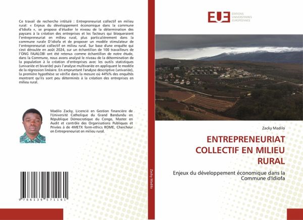 Ce travail de recherche intitulé : Entrepreneuriat collectif en milieu rural: « Enjeux du développement économique dans la commune d'Idiofa », se propose d'étudier le niveau de la détermination des paysans à la création des entreprises et les facteurs qui bloqueraient l'entrepreneuriat en milieu rural, plus particulièrement dans la commune rurale D'idiofa et de proposer un modèle stimulateur de l'entrepreneuriat collectif en milieu rural. Sur base d'une enquête qui s'est déroulée en août 2024, sur un échantillon de 100 travailleurs de l'ONG FAJALOBI ont été retenus comme échantillon de notre étude, dans la Commune, nous avons analysé le niveau de la détermination de la population à la création d'entreprises avec les outils statistiques (univariée et bivariée) puis l'analyse multivariée en appliquant le modèle de la régression linéaire. En empruntant l'analyse descriptive (univariée), la première hypothèse se vérifie dans la mesure où 44%% des enquêtés montrent qu'ils sont peu déterminés à la création des entreprises en milieu rural.