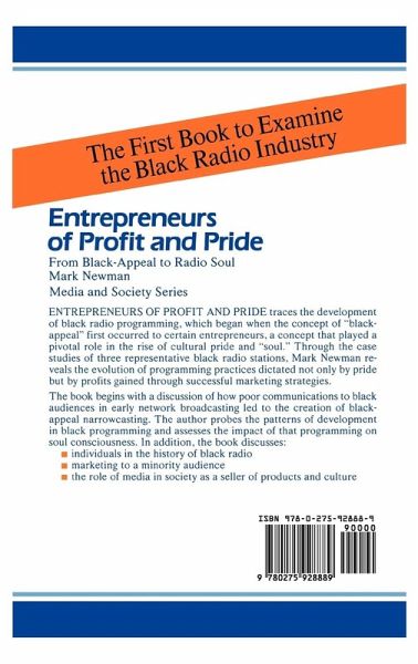 Although much has been written about the golden days of radio, Entrepreneurs of Profit and Pride is the first book to examine the black radio industry. This book traces the development of black radio programming which began when the concept of black appeal first occured to certain entrepreneurs, a concept that played a pivotal role in the rise of cultural pride and soul. Through the case studies of three representative black radio stations, Newman reveals the evolution of programming practices dictated not only by pride but by profits gained through successful marketing. A unique feature of this book is the inclusion of business considerations into a cultural analysis of the medium. The book begins with a discussion of how poor communications to black audiences in early network broadcasting led to the creation of black-appeal narrowcasting. The author probes the patterns of development in black programming and assesses the impact of that programming on soul consciousness. In addition, the book discusses individuals in the history of black radio, marketing to a minority audience, and the role of media in society as a seller of products and culture.