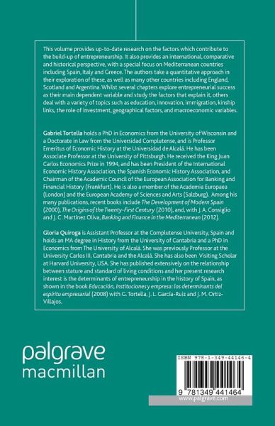 List of Tables List of Figures Acknowledgements Notes on Contributors Introduction; G.Tortella & G.Quiroga PART I: A MULTINATIONAL APPROACH A Tale of Four Countries: Entrepreneurs and Entrepreneurship in England, Scotland, France, Spain: A Comparative Approach; G.Tortella, G.Quiroga & I.Moral-Arce: PART II: INTERNATIONAL EXPERIENCES Entrepreneurs and Businessmen in Greece during the Long Nineteenth Century; J.Foreman-Peck & I.S.Pepelasis: Business Groups in Argentina during the Export-led Growth Period (1870-1914); M.I.Barbero Explaining Entrepreneurial Success: Evidence from the Italian Case (Nineteenth and Twentieth-centuries); P.Toninelli, M.A.Vasta & E.Zavarron PART III: THE SPANISH CASE Some Empirical Aspects of Entrepreneurship in Twentieth-century Spain; J.L.García-Ruiz & T.Pérez Amaral An Approach to Entrepreneurial Success and its Determinants: the Case of Spain'; J.M.Ortiz-Villajos & S.Sotoca PART IV: SOME LOCAL CASES: MINORCA AND MADRID Entrepreneurship and Development: The Minorcan Model; J.Hernández-Andreu & A.Méndez Did Spanish High Schools Breed Entrepreneurs? The Madrid Institutos of Cardenal Cisneros and San Isidro, 1860-1936; C.E.Núñez & B.Moreno Conclusions; G.Tortella & G.Quiroga Notes Bibliography Index