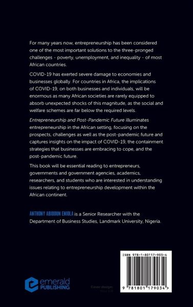 Entrepreneurship and Post-Pandemic Future illuminates entrepreneurship in the African setting, focusing on the prospects, challenges as well as the post-pandemic future and captures insights on the impact of Covid-19, the containment strategies that businesses are embracing to cope, and the post-pandemic future.